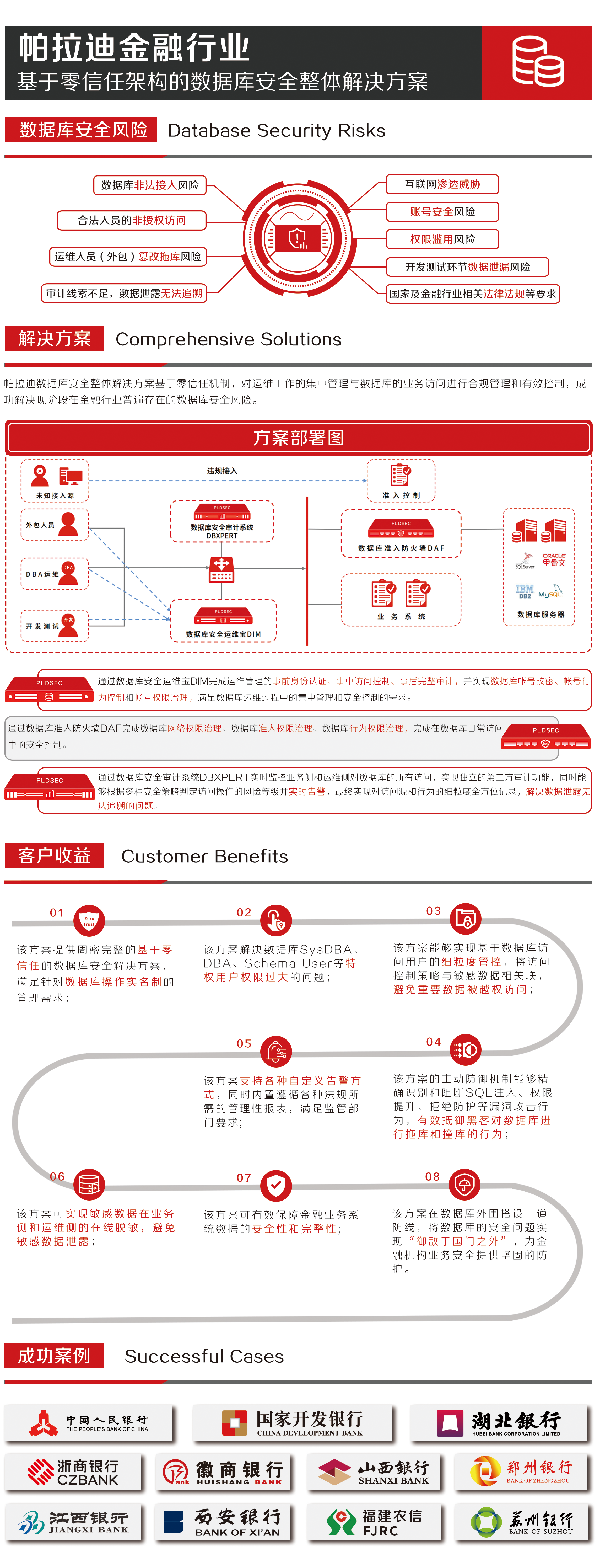 帕拉迪金融行業(yè)數據庫安全整體解決方案基于零信任架構對運維工(gōng)作的集中管理、安全訪問進行合規管理和有效控制,解決現階段在金融行業(yè)普遍存在的數據庫安全風險。