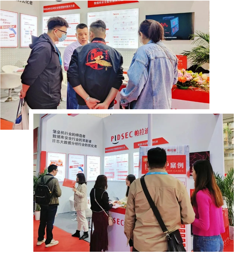 展會(huì)現場,帕拉迪展台吸引衆多(duō)金融領域客戶駐足交流!帕拉迪安全團隊為(wèi)他們介紹帕拉迪