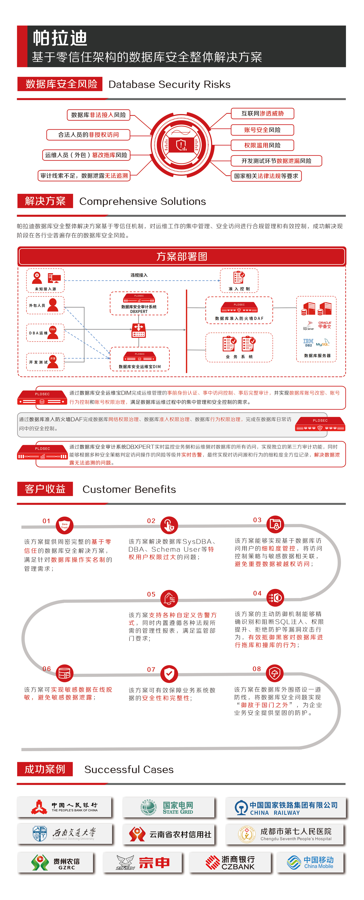 帕拉迪數據庫安全整體解決方案基于零信任架構對運維工(gōng)作的集中管理、安全訪問進行合規管理和有效控制,解決現階段在各行業(yè)普遍存在的數據庫安全風險。