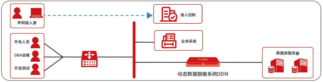 針對業(yè)務訪問脫敏,DDM通(tōng)過透明串聯的部署模式,能(néng)直接針對業(yè)務系統訪問生(shēng)産數據庫中的敏感數據進行差異化地屏蔽、加密、隐藏和審計,無需改變中間件(jiàn)和客戶端配置,并保障業(yè)務的連續性。