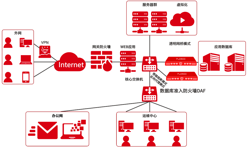 Palladium database access firewall is mainly set up between the application and the database, which establishes a solid barrier for the database, and solidifies the access access rules through white list self-learning (automatically learning the five elements of database access behavior, and artificially solidifying the security rules through the manager), The uncured database access behavior will carry out real-time early warning and block the session (access source address exception, access source host name exception, access source user name exception, access tool name exception, login account name exception), without affecting the performance and modifying the database, Identify unauthorized or suspicious activities by continuously tracking all database operations, and block them in time to avoid network attacks on the database and fundamentally solve the threat of malicious access to the database.