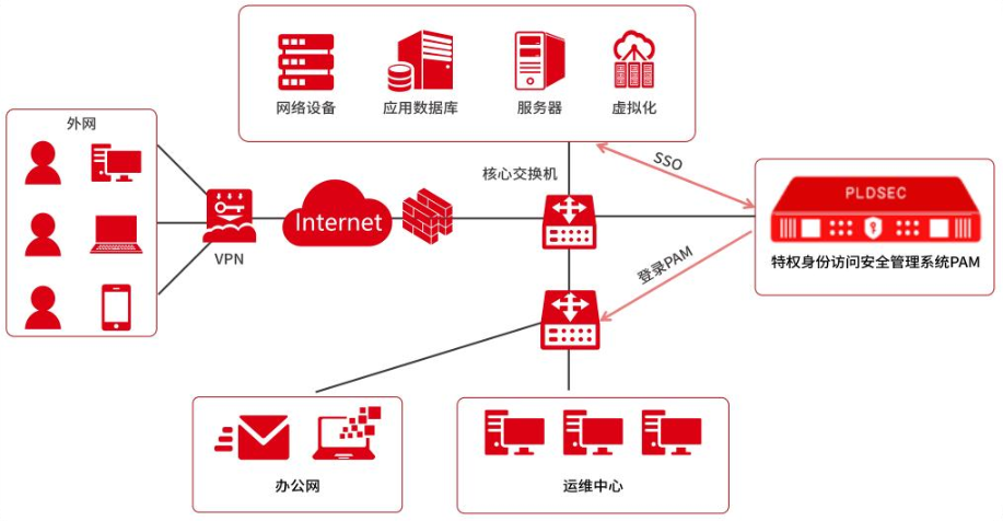 帕拉迪特權身份訪問安全管理系統(簡稱:PAM)結合ITIL、ITSM、IT内控、SOX法案\COBIT法規、信息安全等級保護2.0及IT運維管理要求,遵循《信息保障技(jì)術(shù)框架(IATF)》中的深度包圍技(jì)術(shù)框架,并結合“零信任”安全模型、自(zì)動化安全運維和數據庫身份治理的相(xiàng)關特性,最終解決了數據中心基礎設施特權帳号的統一(yī)安全治理、集中風險檢測、傳輸通(tōng)道管控、深度訪問控制以及數據庫運維特權身份治理的難題。